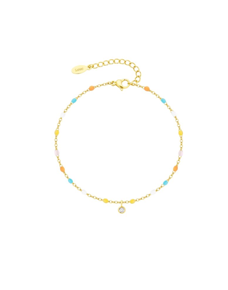 Bracelet minimaliste en acier inoxydable doré, agrémenté de billes en émail avec chainette réglable