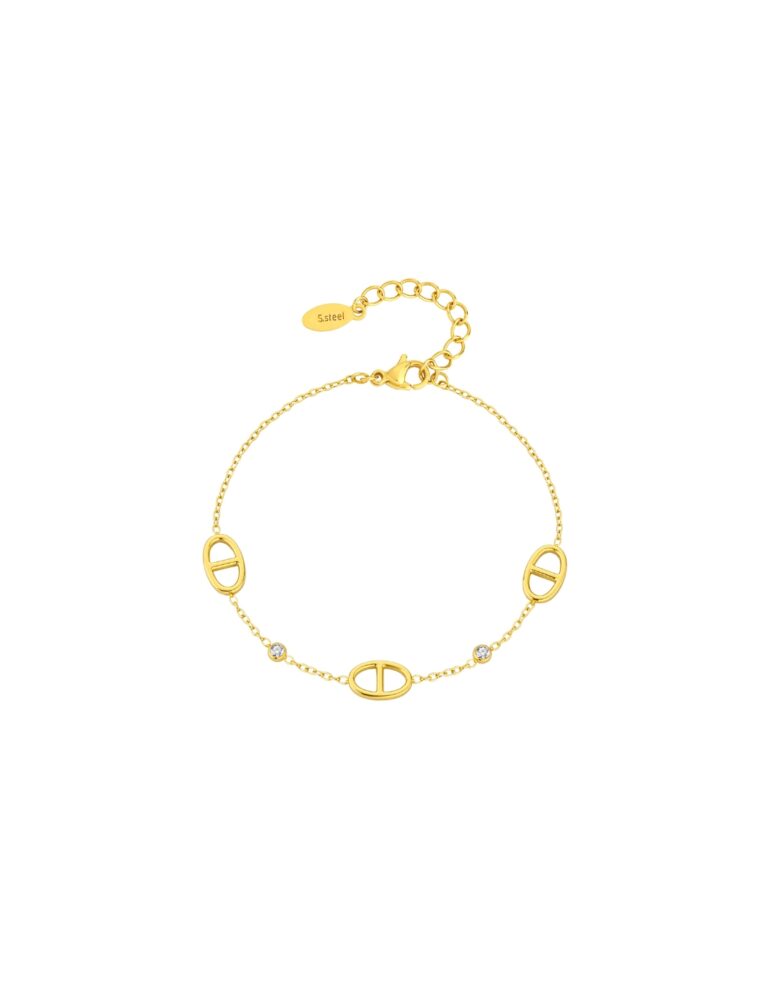 Bracelet élégant en acier inoxydable doré, avec strass et nœuds marins sur chaînette réglable.