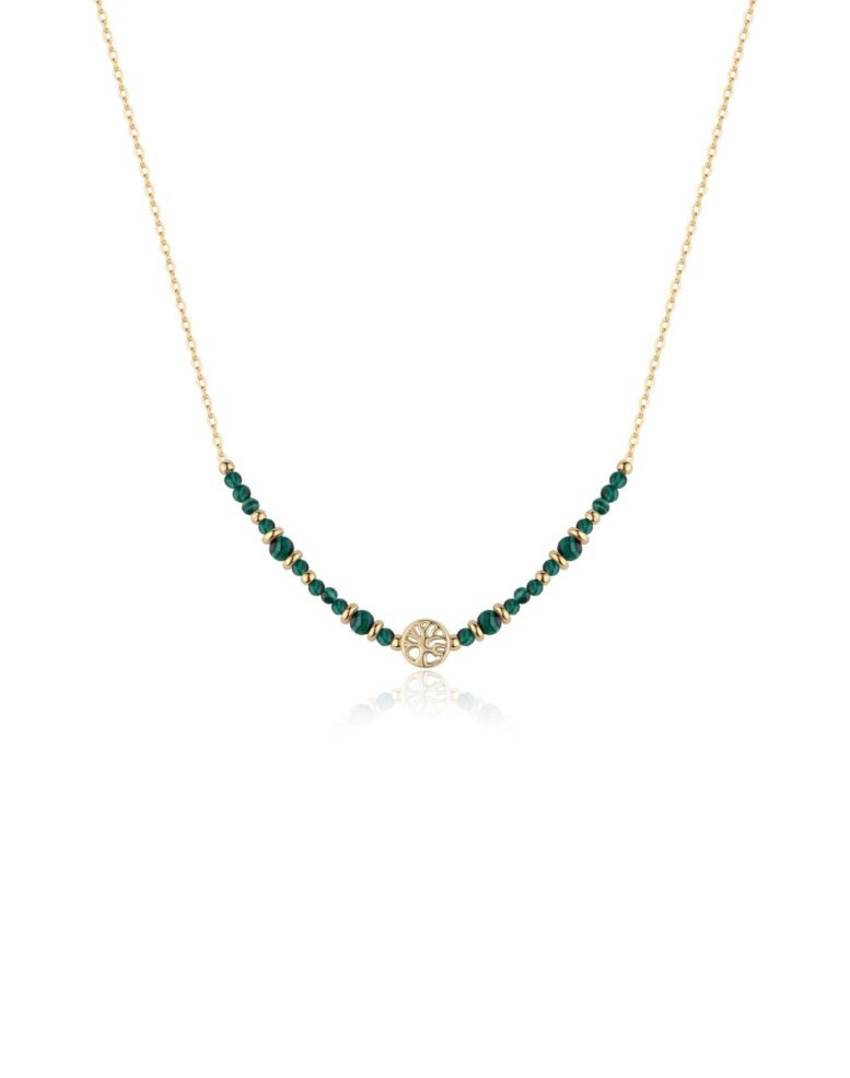 Collier en acier inoxydable dore à chaine fine avec pierres naturelles et pendentif en forme d'arbre de vie