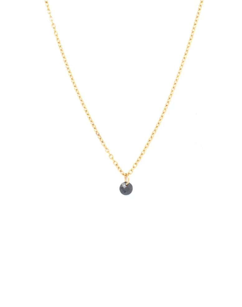 Collier en acier inoxydable avec un pendentif discret noire. disponible en doré et en argenté.